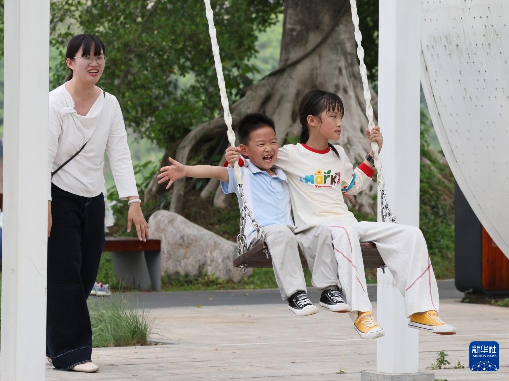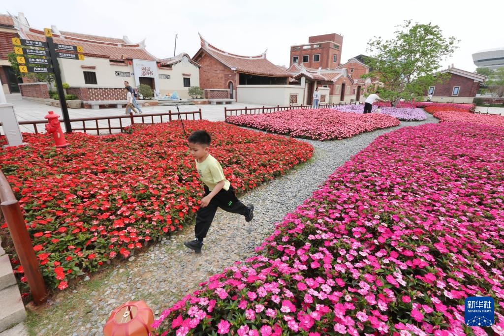 4月11日,小朋友在福建漳州龙江岁月景区游玩。新华社记者 姜克红 摄