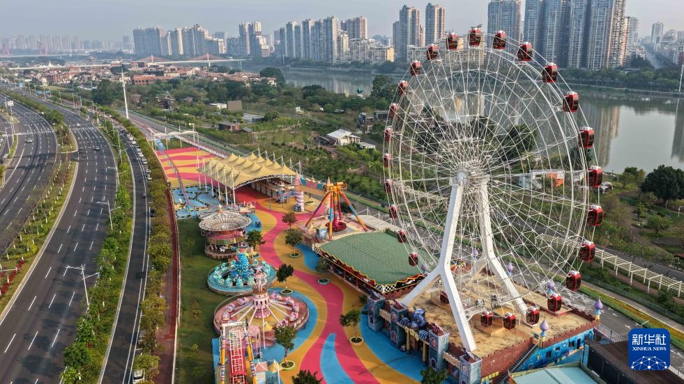 这是4月12日拍摄的福建漳州龙江岁月景区的游乐设施(无人机照片)。新华社记者 邓华 摄